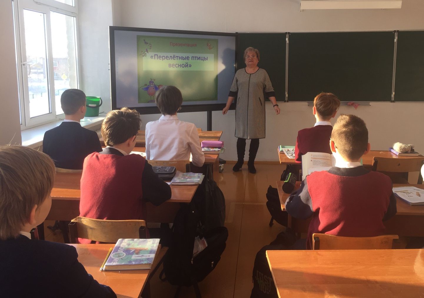 11.03 2022 в 7 -х классах были проведены классные часы, посвящённые первым весенним птицам. Основными целями было формирование у учащихся элементарного представления о жизни птиц в весенний период, уточнение и расширение представления о перелетных птицах, об их жизни в весенний период; дать сведения о звуковых сигналах птиц, о видах гнезд и их размещении; развить интерес к жизни птиц, обогащение словарного запаса, расширение кругозора учащихся