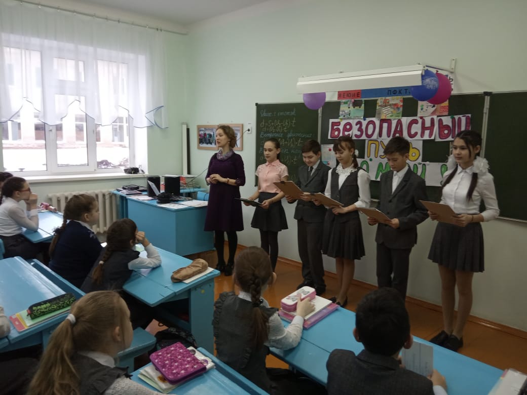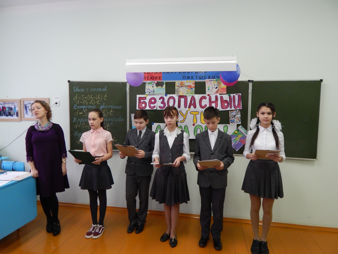 Юные инспектора дорожного движения рассказали учащимся о маршрутах «Безопасная дорога». В ходе беседы дети вспомнили и повторили правила дорожного движения своего маршрута от дома до школы и обратно. В блиц-опросах «Я и дорога» учащиеся отвечали на вопросы, решали дорожные примеры. Заслушали заранее подготовленные выступления учащихся ЮИД о поведении на проезжей части.