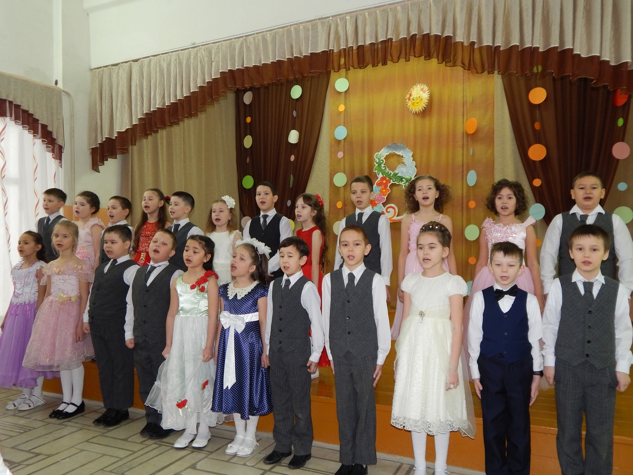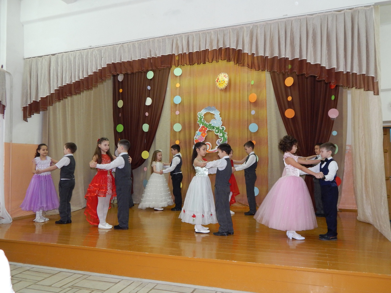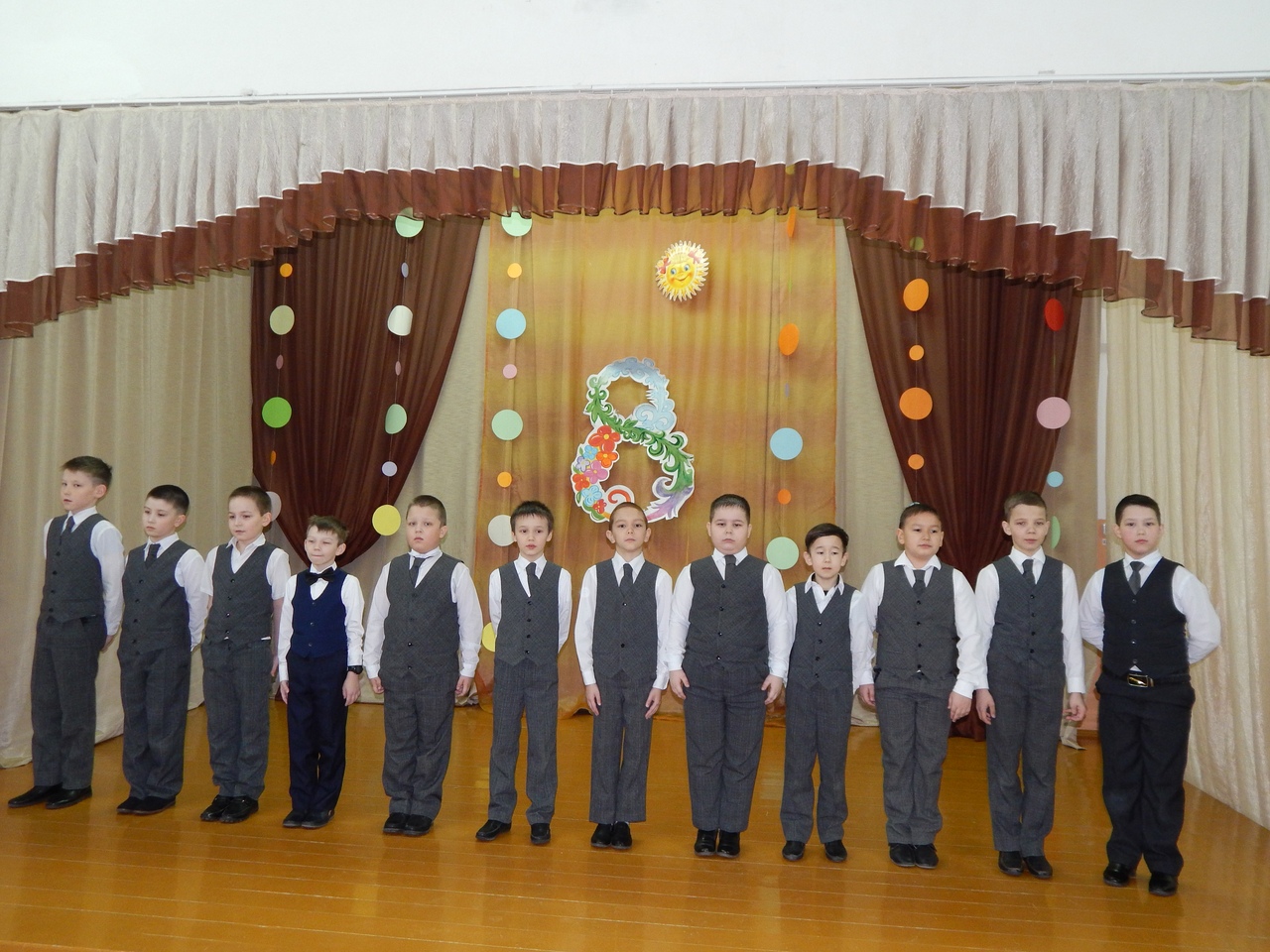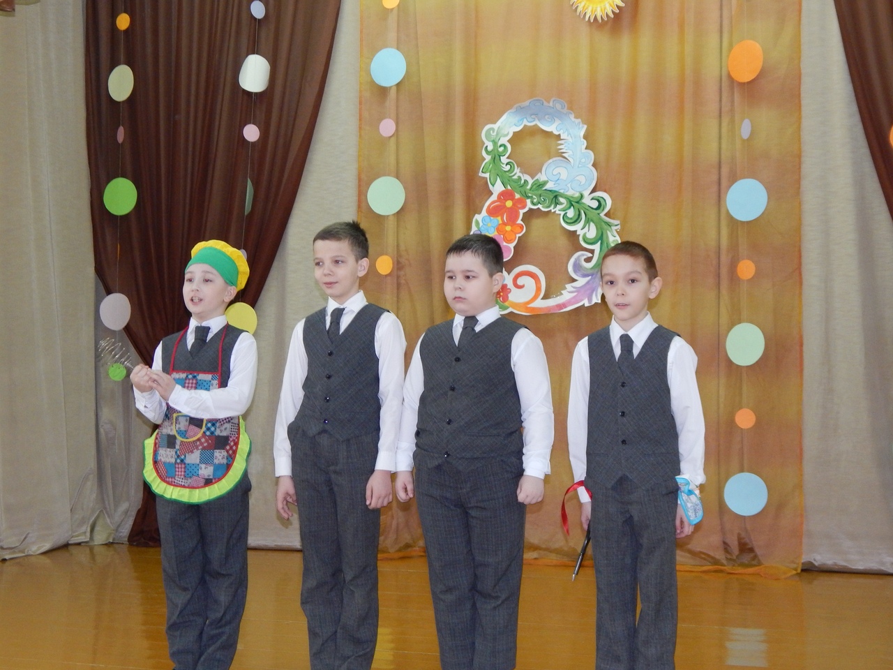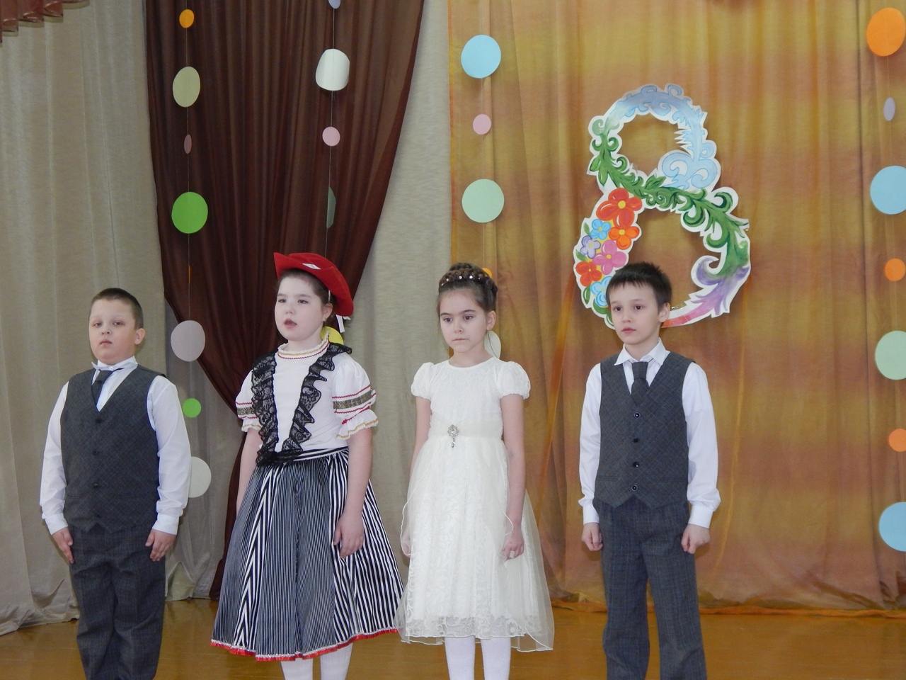 Учащиеся 2 Б класса (кл.рук. Шаяхметова Э.Ф., уч.музыки Нуриахметова А.А., хореограф Миннегулова Э.М.) подготовили празднично-развлекательную программу «Мы будем вечно прославлять». Проводили конкурсы, поздравляли собравшихся и гостей с праздником, подготовили разнообразные номера художественной самодеятельности. Танцы сменялись стихами, песни — конкурсами. Поздравления, песни, танцы, стихи звучали для учителей, девочек, мам, бабушек.