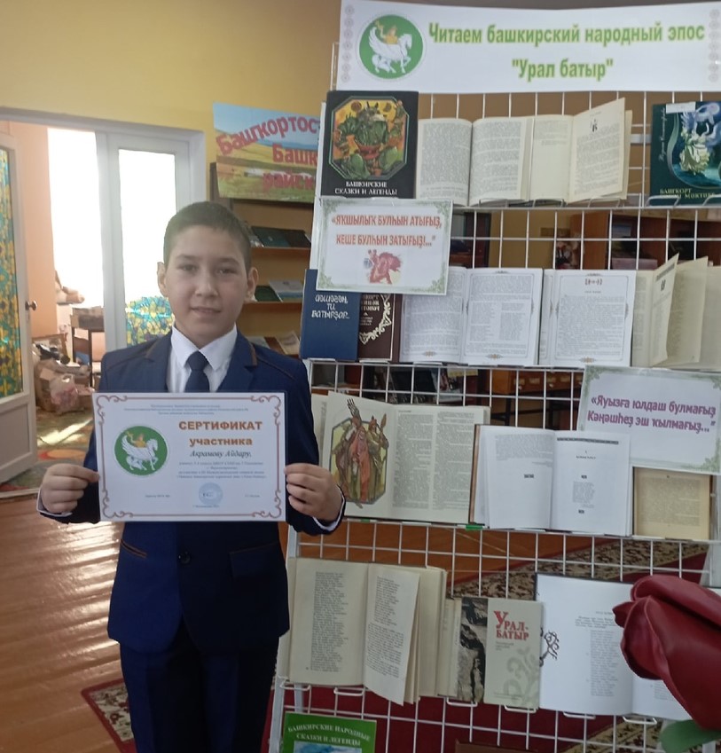 Илеш районының үҙәк китапханаһы шиғриәт һөйөүсе балаларҙы йәнә үҙ залына йыйҙы. Уҡыусылар "Башҡорт халыҡ эпосы "Урал батыр "ҙы уҡыйбыҙ " тип исемләнгән 3-сө төбәк -ара акцияһында ҡатнашты. Сараны йөкмәткеле итеп Әлфиә Вәлиева алып барҙы, педагогик хеҙмәт ветераны Ғәлиева Ғәлимә Мансур ҡыҙы эпостың асылын, әһәмиәтен аңлатты. Райондың төрлө мәктәбенән килгән уҡыусылар эпосты башҡорт,татар, рус, инглиз телендә һөйләп ишеттерҙеләр. Беҙҙең мәктәптең 5- се класс уҡыусыһы Әкрәмов Айҙар ҙа был сарала ҡатнашып, бик матур сығыш яһаны.