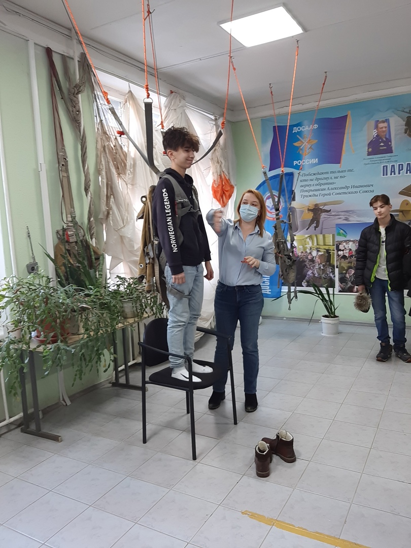 В музее ДОСААФ провели "Урок мужества", на котором рассказали об истории оборонного общества, о подвиге 6 роты ВДВ, о парашютно-десантной подготовке. Ребята попробовали себя в роли парашютиста в подвесных системах, также ознакомились с экспозицией музея.