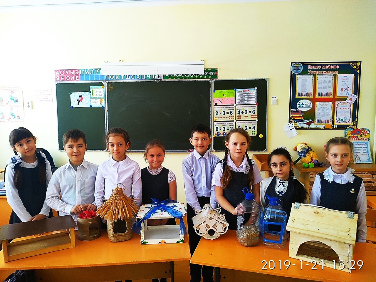 Зима – трудное время для птиц, особенно если она суровая и многоснежная. Чтобы как-то помочь птицам, ребята нашего 3Б класса с огромным желанием решили принять участие в экологической акции «Двор для птиц», в рамках реализации федерального партийного проекта "Городская среда". Совместно с родителями в нашем классе была организованна выставка кормушек, сделанных своими руками. Каждый из участников придумал свою, особенную кормушку, проявив талант, творчество и сострадание к зимующим птицам.