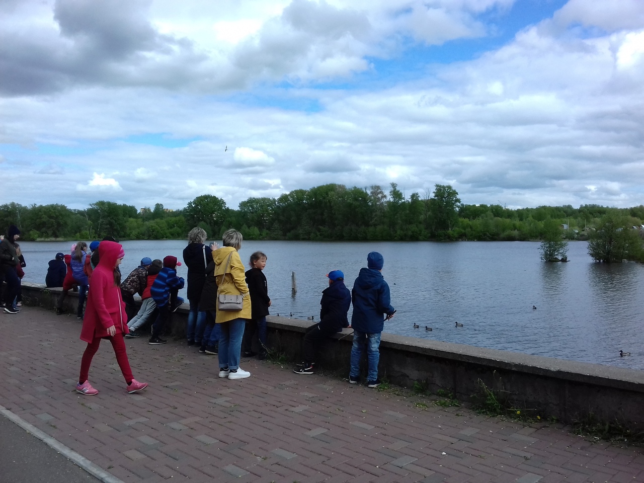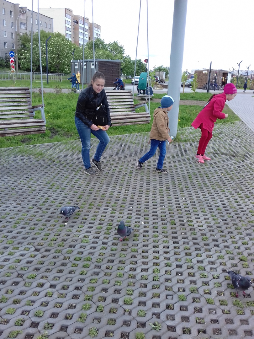Состоялась прогулка по красивой набережной. Пасмурная и ветреная погода не испортила нам настроение. Прямо на берегу стояли тренажёры, качели. Был прокат роликов и велосипедов. Ребята немного прокатились, поиграли и покормили уток, голубей.