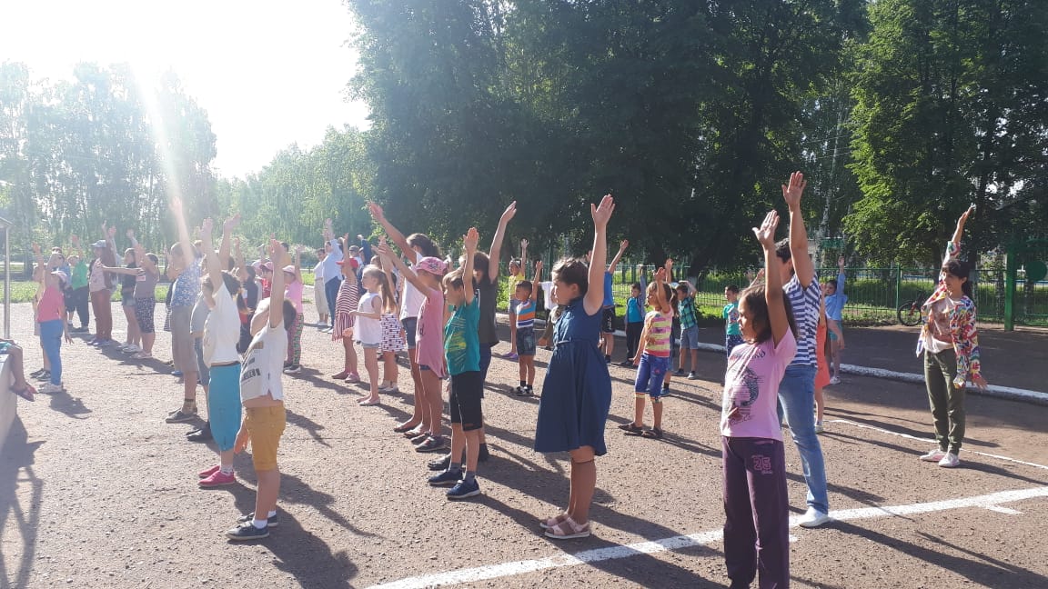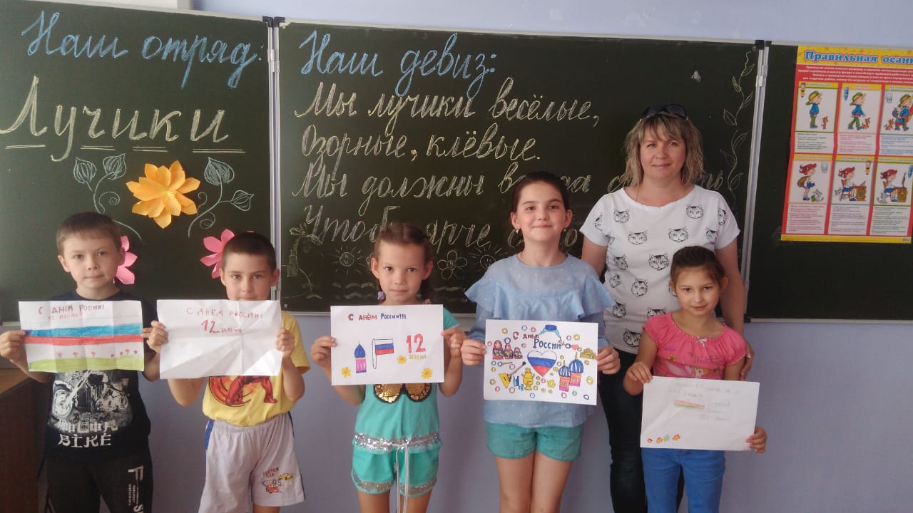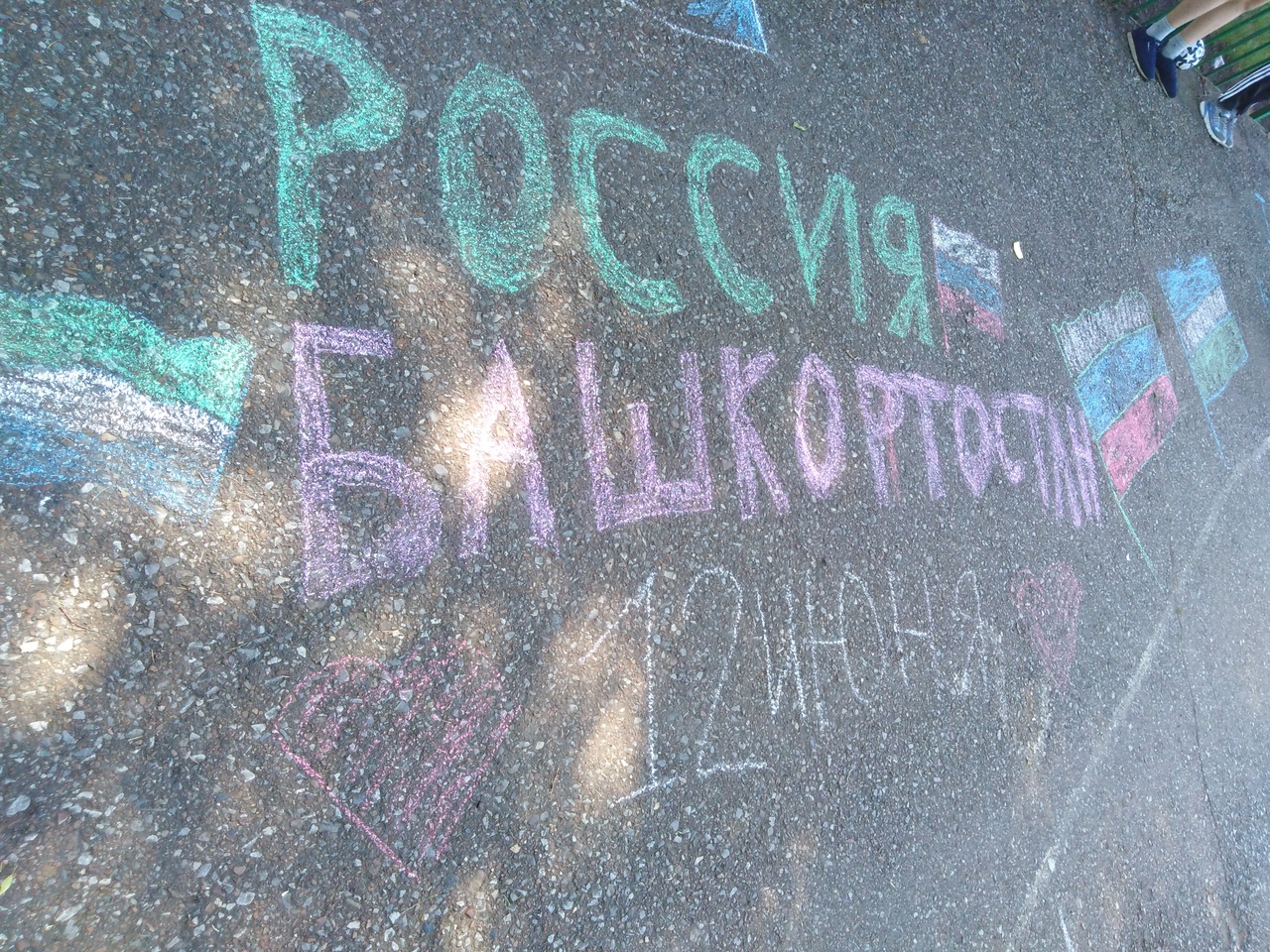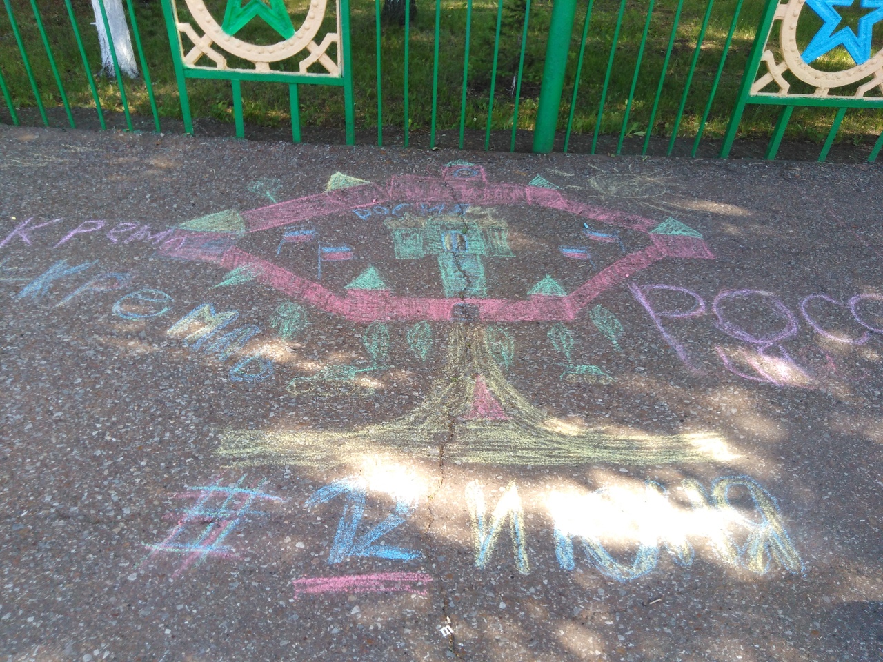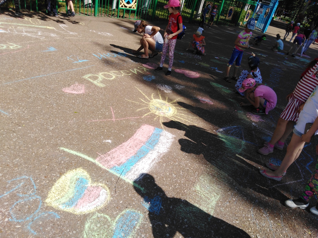 День начался с утренней музыкальной зарядки на свежем воздухе. Дети с большим удовольствием выполняли упражнения, некоторые даже пританцовывали. К этому увлекательному мероприятию присоединились также вожатые и воспитатели отрядов. Окончательно проснувшись и взбодрившись, все дружно отправились завтракать. Известно, что сегодня вся страна отмечает праздник - День России. В связи с этой знаменательной датой вожатыми в отрядах были проведены беседы на данную тему. Позже в парке культуры и отдыха был организован конкурс рисунков на асфальте. На рисунках было много солнца и светлых красок. Это означает, что наши дети живут хорошо – под ясным, мирным небом. Хочется, чтобы и на рисунках, и на небе, и в душе у них всегда было как можно больше света, тепла и солнца. Пусть у нашей России всегда будут счастливые дети!