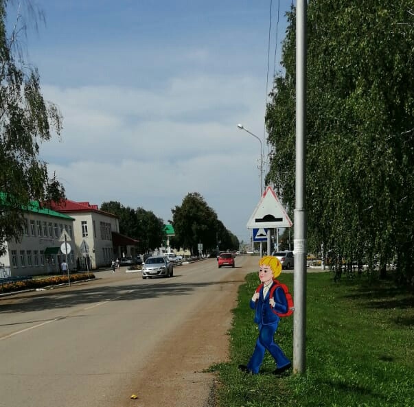 Учителя школы изготовили макет школьника и установили рядом с пешеходным переходом, чтобы напомнить водителям о необходимости снижения скорости при подъезде к пешеходным переходам. Макет ребенка одет в школьную форму, что напоминает водителям о предстоящем начале учебного года и соответственно массовом появлении детей на дорогах. Подобные фигуры должны заставить водителей быть на чеку, концентрируя их внимание возле пешеходного перехода.