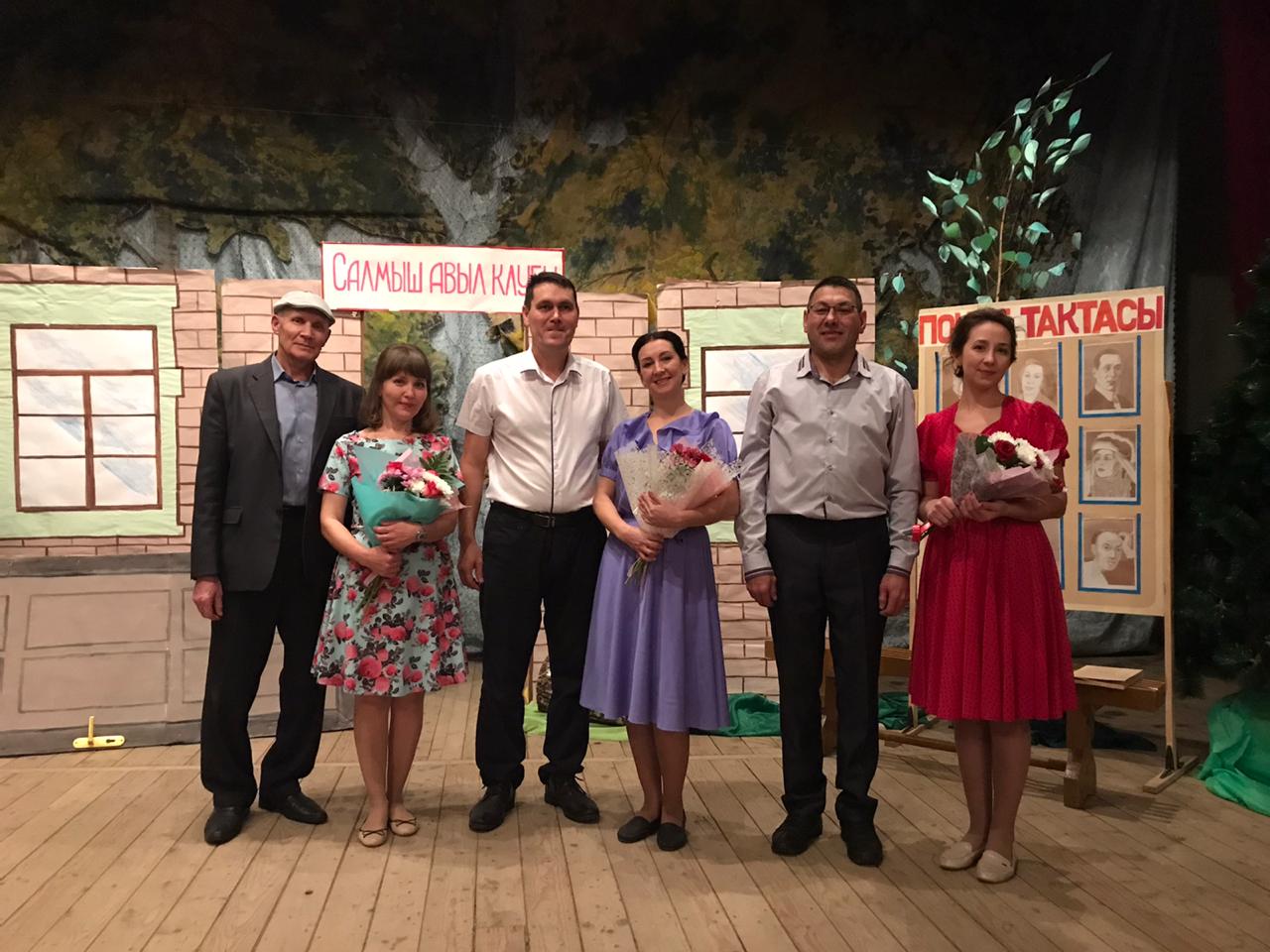 В рамках акции "Театралика-2019" на прошлой неделе творческий коллектив МБОУ СОШ им.Т.Рахманова с.Верхнеяркеево выступил в доме культуры с.Андреевка. На суд зрителей и жюри была представлена музыкальная комедия драматурга А.Гаделя "Безнен авыл Наполеоны". В своём выступлении учителя-артисты затронули насущные проблемы сел и деревень. Снабжение населения питьевой водой, неблагоустроенные дороги,а вместе с тем и личная жизнь героев легли в основу спектакля. Игра артистов сопровождалась музыкальными номерами, прекрасными сольными исполнениями песен и дуэтами. В завершении представления зрители аплодировали стоя! Это самая высокая оценка для артистов... Но,что скажет жюри,об этом мы узнаем в декабре...