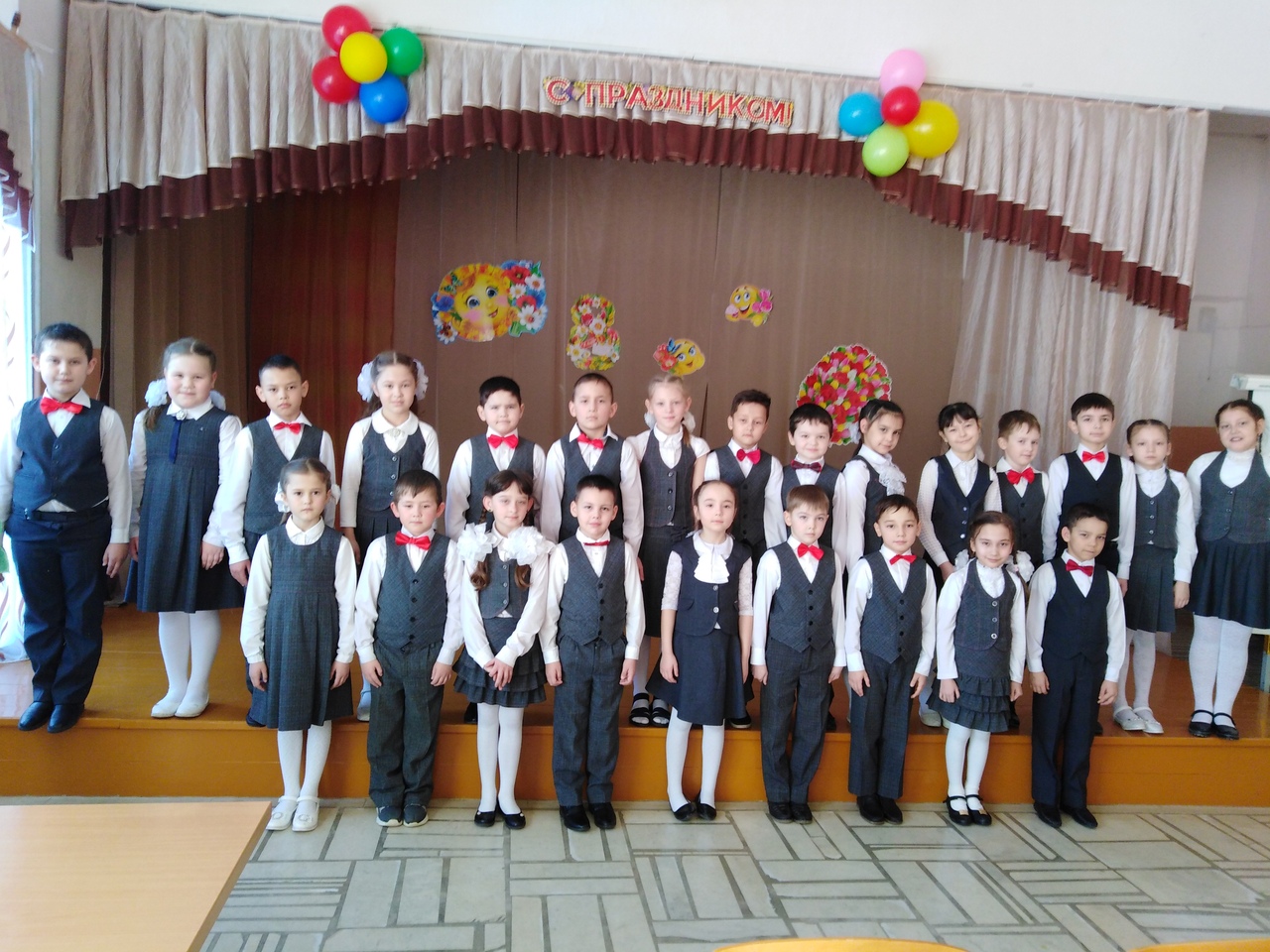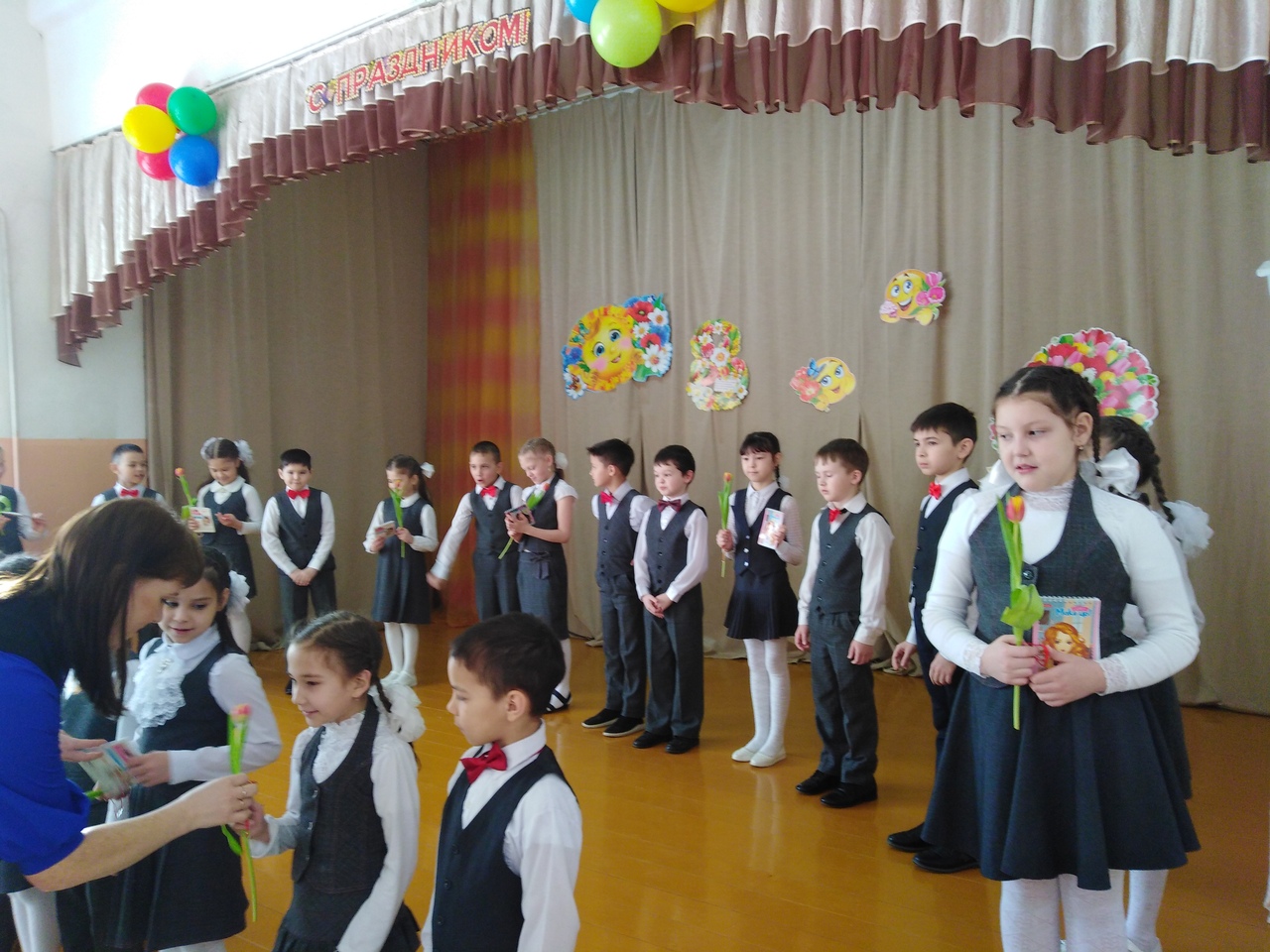 В преддверии праздника 5- 6 марта учащиеся 2 б класса для учителей, учащихся начальной школы и для своих мам и бабушек подготовили праздничное мероприятие, посвященные женскому дню. Все номера, поздравления, песни, танцы, стихи и шутки были посвящены женщинам, любви и весне! Трогательно и мило звучали стихотворения, песни, а вокальная группа девочек поразила стройностью и слаженностью голосов. Особенно покорили сердца зрителей шуточные частушки в исполнении мальчиков. Были представлены и интересные задорные танцевальные номера: башкирская полька, вальс цветов, ритмичный танец американо.