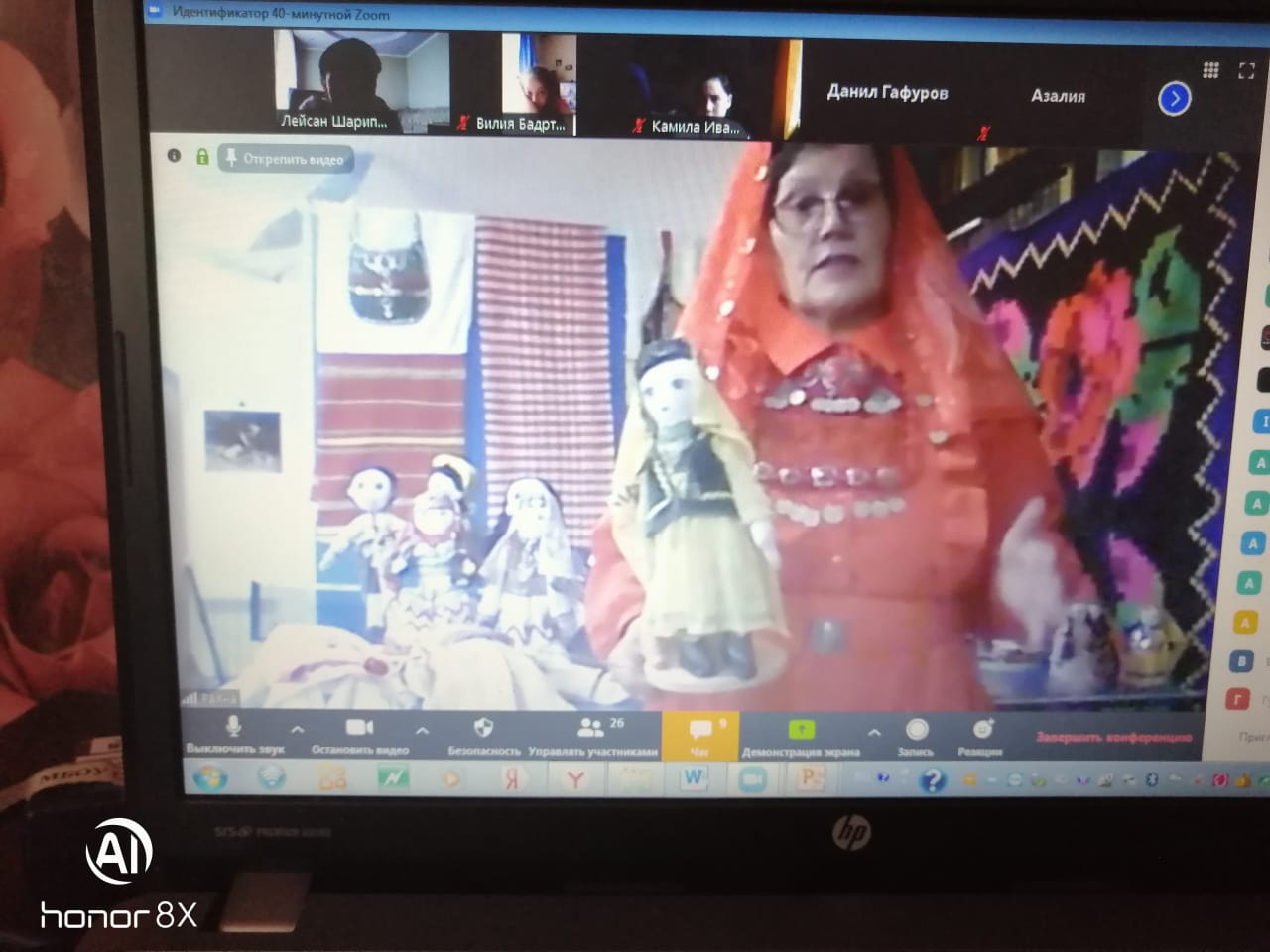 17 апреля наша школа приняла активное участие в мероприятиях, посвященных Дню национального костюма. Праздник национального костюма народов Башкортостана дает возможность ещё раз обратиться к истории и культуре наших предков, продвигать непреложные нравственные ценности среди подрастающего поколения. В этот день во всех классах прошли онлайн-уроки и классные часы. А в 4б классе на урок была приглашена бабушка ученицы Саттаровой Раяны - Аниса апа. Она искусно рассказала учащимся о куклах, которых создала сама. У каждого персонажа - свой костюм. У каждого костюма - своя история. Так же Аниса апа поведала всем о платье, которое сшила для себя, в котором и пришла на урок, чем и придала особый национальный колорит мероприятию. Родители учащихся тоже присоединились к онлайн-трансляции и, по завершении, высказали теплые слова благодарности.