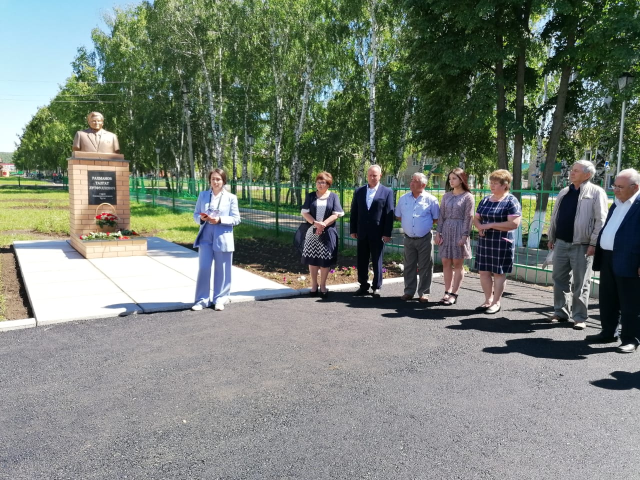 Наша школа была построена в 1976 году, по инициативе Талгата Лутфулловича, в годы его работы первым секретарём райкома партии. А с 2011года школа гордо носит его имя. И отрадно отметить, что в честь 100-летия со дня рождения Талгата Лутфулловича, во дворе школы, был установлен памятник. На торжественное открытие приехали дочь, внучка и правнуки легендарного земляка. Гости мероприятия возложили цветы к памятнику Т.Л.Рахманова и вспомнили его величайшие заслуги.