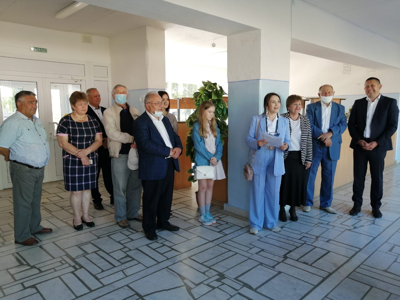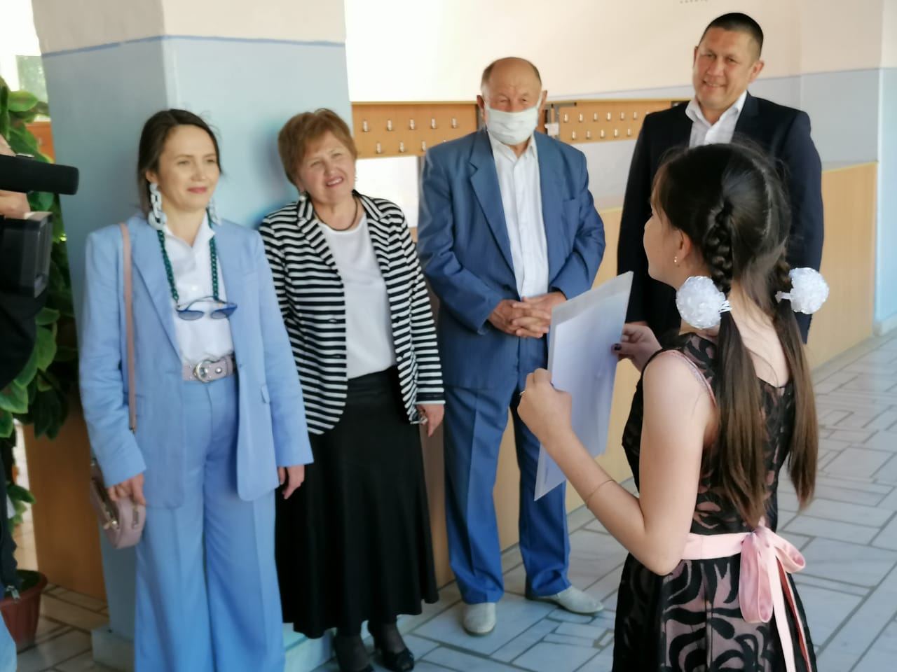 Внутри школы участники мероприятия ознакомились со стендом, посвящённого жизни и трудовой деятельности Талгата Лутфулловича. Ученица 5 класса – Галимова Агата вместе со своей мамой – библиотекарем нашей школы Альбиной Фанисовной - в своё время провела исследовательскую работу на тему «История одной фотографии». Фотография довольно известная. На ней Талгат Лутфуллович со своей единственной внучкой Элиной на фоне поля, где на заднем фоне стоит комбайн. Агата с волнением ждала встречи с девочкой, которая на протяжении всей своей исследовательской работы смотрела на нее с этого фото. Вот с такими словами она обратилась к Элине Морисовне: «Здравствуйте, уважаемые гости! Здравствуйте, Элина. Я очень рада встрече с Вами. Я Вам благодарна, что помогли мне тогда с моей работой. Для меня было удивительным, что одна фотография может рассказать целую историю из Вашей жизни и из жизни Вашего уважаемого дедушки. Я буду бесконечно рада, если моя исследовательская работа, частичка моего труда займёт место в Вашей библиотеке, где Вы храните память о своём дедушке Талгате Лутфулловиче Рахманове.В этот знаменательный для Вас и Вашей семьи день, я бы хотела вручить Вам свою работу». В завершении мероприятия Светлана Талгатовна – дочь Героя - искренне поблагодарила всех за оказанное внимание и уважение к отцу.