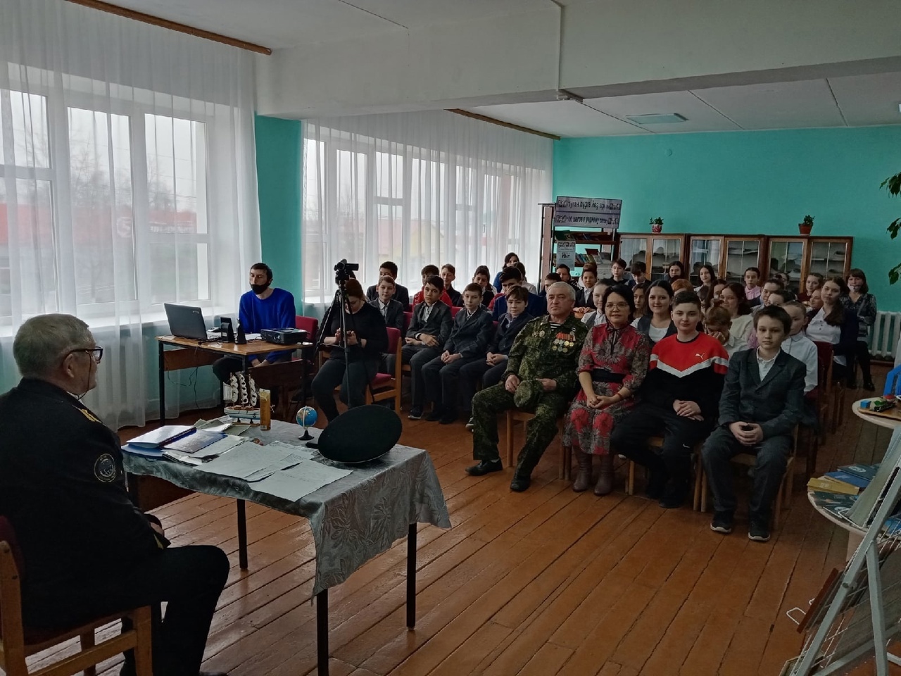 На тематический час был приглашен наш земляк, помощник председателя Башкирского регионального отделения Федерации космонавтики России Хуснуллин Ильдар Явдатович, служивший в 1977-1979 гг. на одном из легендарных кораблей измерительного комплекса, которые обеспечивали полеты космонавтов в космос.