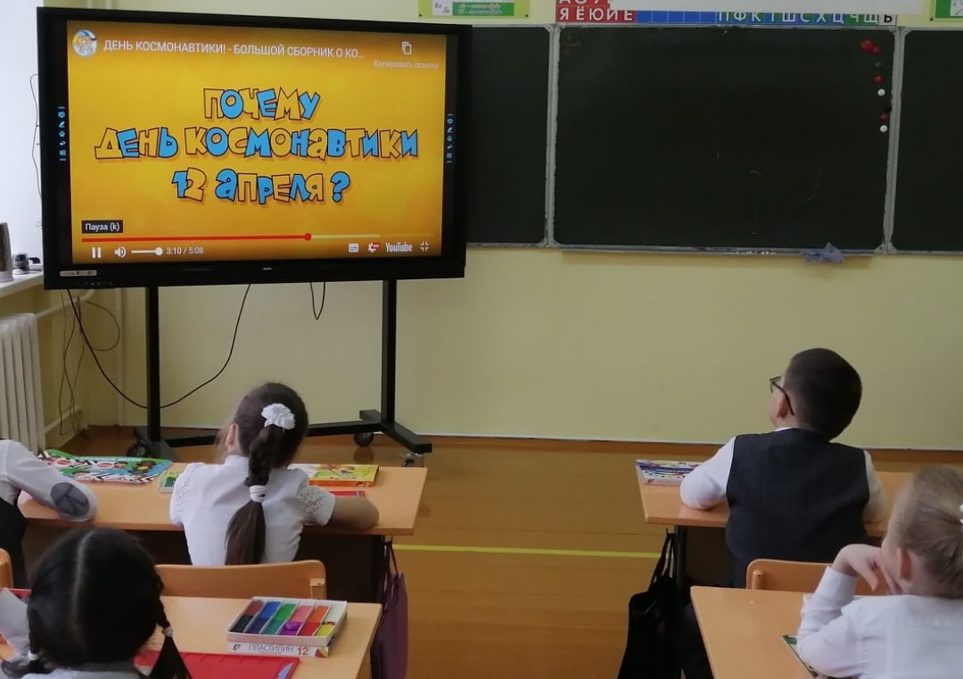 Были показаны видеоролики о первом полете человека в космос, рассказано о выдающемся, первом космонавте Юрие Гагарине.