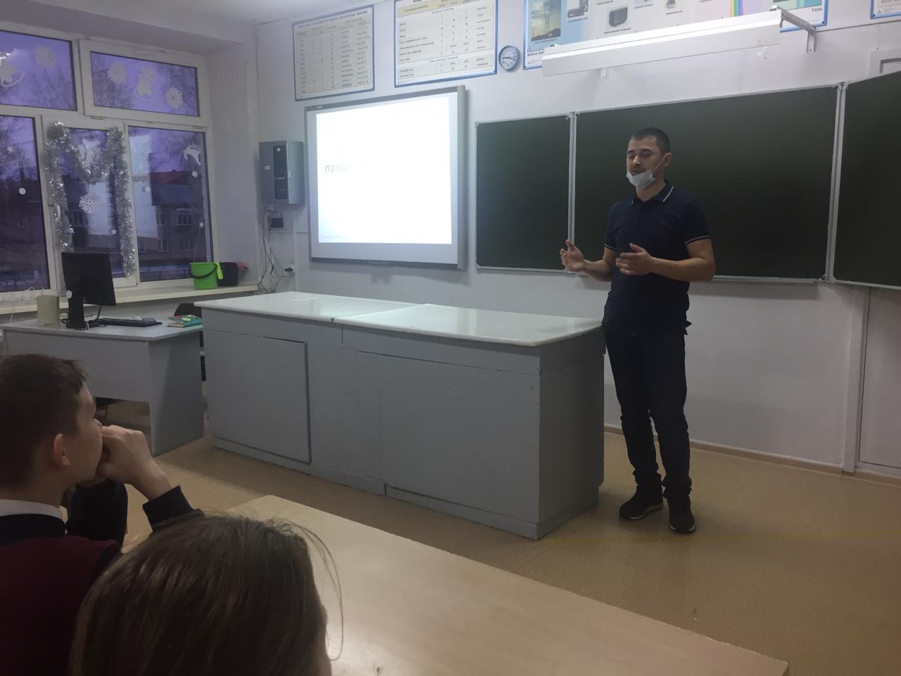В рамках проведения открытого урока по теме «Экономика и развитие предпринимательства» на встречу с учениками 8б класса нашей школы пришёл успешный предприниматель нашего района, владелец ООО «Стройпартнёр» Гареев Ришат Фанависович. Он рассказал ребятам о своей деятельности, о том как начал своё дело, как развивал его, каковы особенности занятия предпринимательской деятельностью.