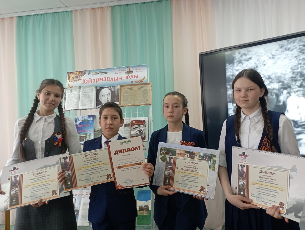 5 май көнөндә үҙәк китапханала “Осоусы батырлығы-мәңгелек яҙмаларҙа ” тигән әҙәби – ижади бәйгенең йомғаҡлау сараһы үтте һәм конкурста еңеүселәр бүләкләнде.