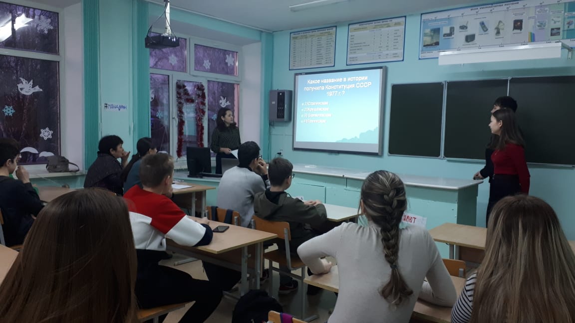 26 лет тому назад был принят основной закон нашего государства – Конституция Российской Федерации. В честь этого события для учащихся нашей школы были организованы мероприятия, приуроченные к этой дате. Так, сотрудник Центральной районной библиотеки Р.Султанова провела информационно-познавательный час «Моя страна - моя Россия». В этом мероприятии учащиеся 5-6 классов показали свои знания в области структуры действующей конституции, обязанностей и прав граждан РФ. Также, оказалось, неплохо знают права и обязанности школьника, то есть свои. Мероприятие дополнил просмотр интерактивного видео канала «Инфоурок». Для учащихся 9-11 классов учитель истории и обществознания Г.Р.Самигуллина провела правовую игру «Знаток Конституции», где приняли участие по одному представителю с каждого класса. Им была предоставлена возможность испытать свой багаж знаний законов Конституции РФ. Результат показал, что молодые граждане России хорошо ориентируются по данной теме. Важно, конечно, не только знать, а непременно выполнять, соблюдать все законы Конституции России. Быть законопослушным гражданином своей Родины – обязанность каждого человека. Начиная от школьника до представителей власти…